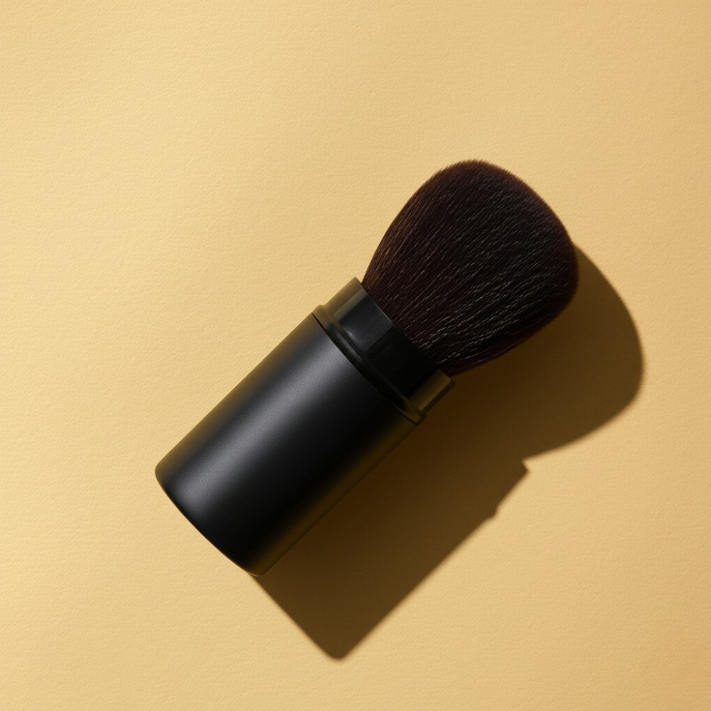 Designed for convenience and precision, this retractable brush is perfect for applying pressed powders, blush, bronzer, and highlighter with ease. The compact bristle head is dense and soft, allowing you to control the level of coverage—from a subtle glow to a more defined finish. Encased in a sleek black metal tube, it’s ideal for keeping your brush clean and protected while on the go.