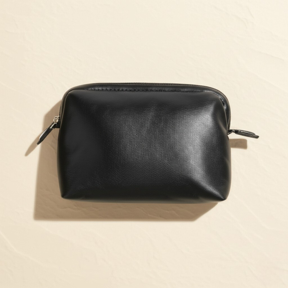 Sleek and understated, this black cosmetic bag offers a perfect mix of elegance and practicality. Made from a soft, matte fabric that’s both comfortable to hold and simple to wipe clean. The secure zipper keeps your beauty must-haves safely stored—whether you're traveling or organizing at home. With its roomy interior, there's plenty of space for your everyday makeup and skincare essentials, making it a chic and functional piece for any beauty lover.